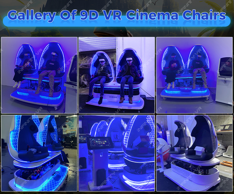 VR Egg Chair is a 9D virtual reality chair that allows VR player to have the most powerful realism sense form the auditory, visual, tactile, as exposure to the movies, through environmental simulation to have wind, air jet, leg tough, back poke, vibration environmental effects, real feeling, immersive and fun.And you also can aim at the target with your head and press the button in the seats to shoot the target in the movies you see in the glasses. We have different kind of movies which will show you the different experience.